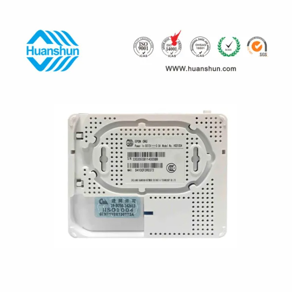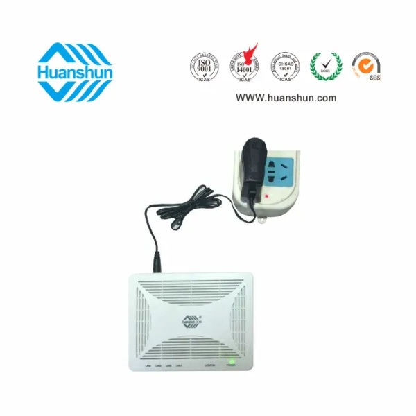 EPON ONU | HSO10 04 | EPON 4FE ONU ,PON端口接入,并帶盤(pán)纖裝置;外置 90~255V-12V 1A 電源線 |