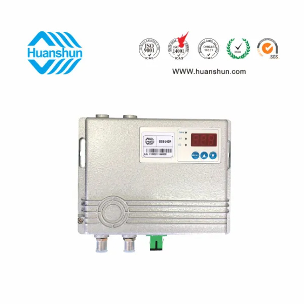 室內型光接收機 | GS8640R 1×104/2×100 | 47~860MHz,-7~+2dBm/RF 1×104或2×100dBuv,電調輸出電平和均衡量,外置 90~255V-12V 1.5A 電源適配器 |