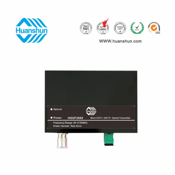 HSGF2600有線電視和衛(wèi)星中頻小功率光發(fā)送機(jī),它工作于CATV 45-862MHz和SAT-IF 950-2150MHz帶寬,也可單獨(dú)工作于CATV或SAT-IF頻段,經(jīng)全砷化鎵低噪聲放大加載到1310nm或1550nm同軸型光發(fā)管上,并輸出對(duì)應(yīng)波長(zhǎng)及相關(guān)規(guī)格光功率的光信號(hào)。為配合衛(wèi)星高頻頭極化和22K選擇方式,本機(jī)增設(shè)選擇開(kāi)關(guān)并配合電源指示燈對(duì)應(yīng)電源和22K在線狀態(tài),即13V POWER綠燈,13V+22K POWER綠燈閃爍,18V POWER紅燈,18V+22K POWER紅燈閃爍;Optical燈代表光發(fā)功率大小,>1.5mW綠燈,>1mW~<1.5mW黃燈,<1mW紅燈。使用本機(jī)可通過(guò)光纖實(shí)現(xiàn)高質(zhì)量、長(zhǎng)距離傳輸,適用于研究所、學(xué)校、運(yùn)營(yíng)商衛(wèi)星異點(diǎn)接收及小區(qū)個(gè)人用戶(hù)使用。